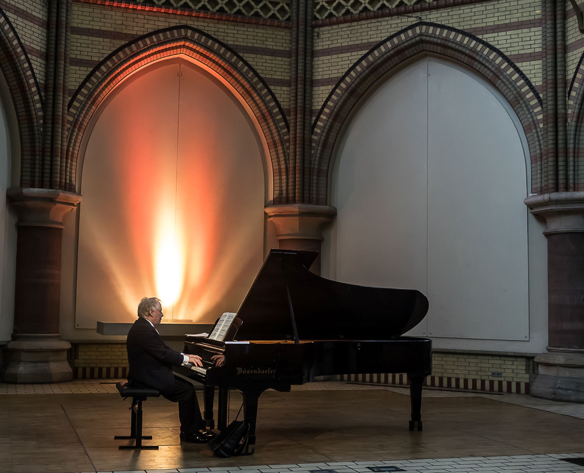 Also vier Elemente: Eine „flammendere“ Musik ist an diesem Sonntagvormittag dazu kaum denkbar. Modale Tonkaskaden, absteigende Halbton- und Ganztonschritte und vieles mehr, verdichten sich zu einem Brausen, das lauter werdend, wie Feuer züngelnd alles zu verschlingen droht. Alexander Skrjabins Tondichtung „Vers la flamme“ – pianistisch eindrucksvoll durch Mathias Weber auf einem großen Bösendorfer entfacht – fand in der außergewöhnlichen Akustik von Hamburgs Kulturkirche reiche Nahrung. Liest man über Intention und Entstehungskontext dieses Werkes aus dem Jahr 1914, ist die Rede von einer „extremen Überzeugung seines Schöpfers, dass die Hitzeakkumulation zur Zerstörung der Welt führen würde.“ Aber jenseits dieser, „brennend“ aktuell wirkenden dystopischen Konnotation markierte diese Darbietung eine Entdeckung von überraschender Musik, die keine Kompromisse eingeht – und einem daher im normalen Alltagskulturbetrieb doch häufig vorenthalten wird. Und allein das hatte die weite, spontane Anreise nach Hamburg schon gerechtfertigt. Mathias Webers langjährig betriebene Klangforschungen auf den Erard-Flügeln geben seinem Spiel auch dann einen pianistischen Wiedererkennungswert, wenn er einen Bösendorfer unter seinen Händen hat. Verblüffend klar und analytisch gab sein Spiel auch sämtlichen elementaren Klangzuständen in diesem Programms feinste Kontur.