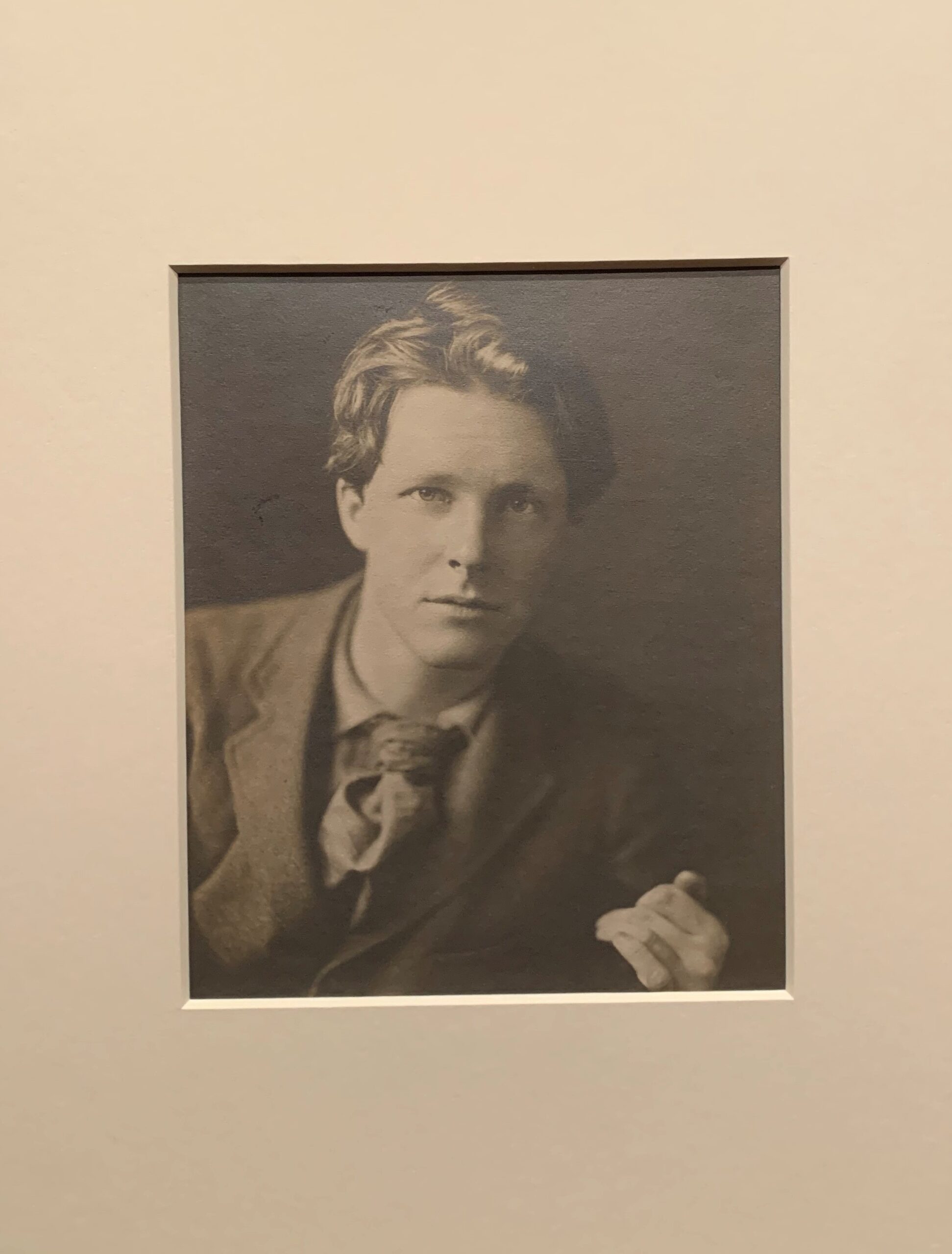 Eine intakte Oberschicht und eine tatsächlich regierende Krone machen es einem Dichter leichter zu leben und zu dichten. In keinen Sumpf wird er herabgezogen, weder den des Mittelmaßes noch eines wie immer gearteten Marktes. Rupert Brooke schrieb seine bekanntesten Gedichte im Jahr 1914, als Großbritannien in den Ersten Weltkrieg eintrat. Für Brooke, der schrieb, bevor das volle Grauen des Konflikts erkannt wurde, schienen junge Männer dankbar für die Gelegenheit, für ihr Land zu kämpfen. Der Tod galt als ein Opfer, das es wert war, gebracht zu werden. Brookes Werk wird häufig herangezogen, um ein romantisiertes Ideal des vorkriegszeitlichen Englands heraufzubeschwören. Sheril Schell nahm dieses Photo 1913 auf, nur zwei Jahre bevor Brooke auf dem Weg zum Kampf bei Gallipoli an einer Infektion starb. Zu Lebzeiten galt der junge Dichter als attraktivster Mann Englands. Dieser Gelatine-Silber-Abzug vom April 1913 wird in der ständigen Sammlung der National Portrait Gallery am Trafalgar Square in London gezeigt.