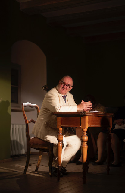 Holzdielen knarren. Franz Schubert stürmt auf die Bühne, direkt auf den historischen Hammerflügel zu, der im kleinen, intimen Konzertsaal auf Schloss Seehaus wie ein Schmuckstück im Kerzenschein thront. Die Büste Franz Liszts scheint aus dem Off zu nicken, wirft gar einen verstohlenen Blick auf die Klaviatur des edlen Wiener Tastenwunders, gebaut 1822 vom Klavierbauer Andreas Landschütz. Allein sechs Pedale lassen das „Landschütz-Hammerklavier“ zur erzählend-singenden Opernbühne werden. Es scheint, als schaue Liszt jetzt ganz stoisch und erwartungsvoll hinein ins kommende Geschehen — immerhin hat er, der spätere Virtuose und Tastenkönig, gute Erinnerungen an Wien, an die Musik und die Komponisten, deren Werke bei der „Großen Schubertiade“ zu hören sind. Sogar das Hammerklavier ist ihm nicht unbekannt: 1822, in dessen Baujahr, war Liszt ja gerade in Wien angekommen, wurde als „kleiner Herkules“ und Wunderknabe gefeiert, und gab dort sein erstes Konzert. Beim zweiten war Ludwig van Beethoven anwesend. Und der Jüngling Liszt hatte sich, ebenso wie der Gigant Beethoven oder der junge Schubert, an die Vertonung eines Walzers des Verlegers Anton Diabelli gewagt. Sogar Lieder des Förderers Beethovens, dem Widmungsträger von Schuberts „Erlkönig“, Moritz von Dietrichstein, erklingen in diesem illustren ersten Teil des Eröffnungsabends im pittoresken Schloss Seehaus. Und dann ist da ja noch der stattliche Schubert (Udo Samel) — nicht Schobert, wie er betont. Alle lauschen ihm. Genug der Imaginationen!