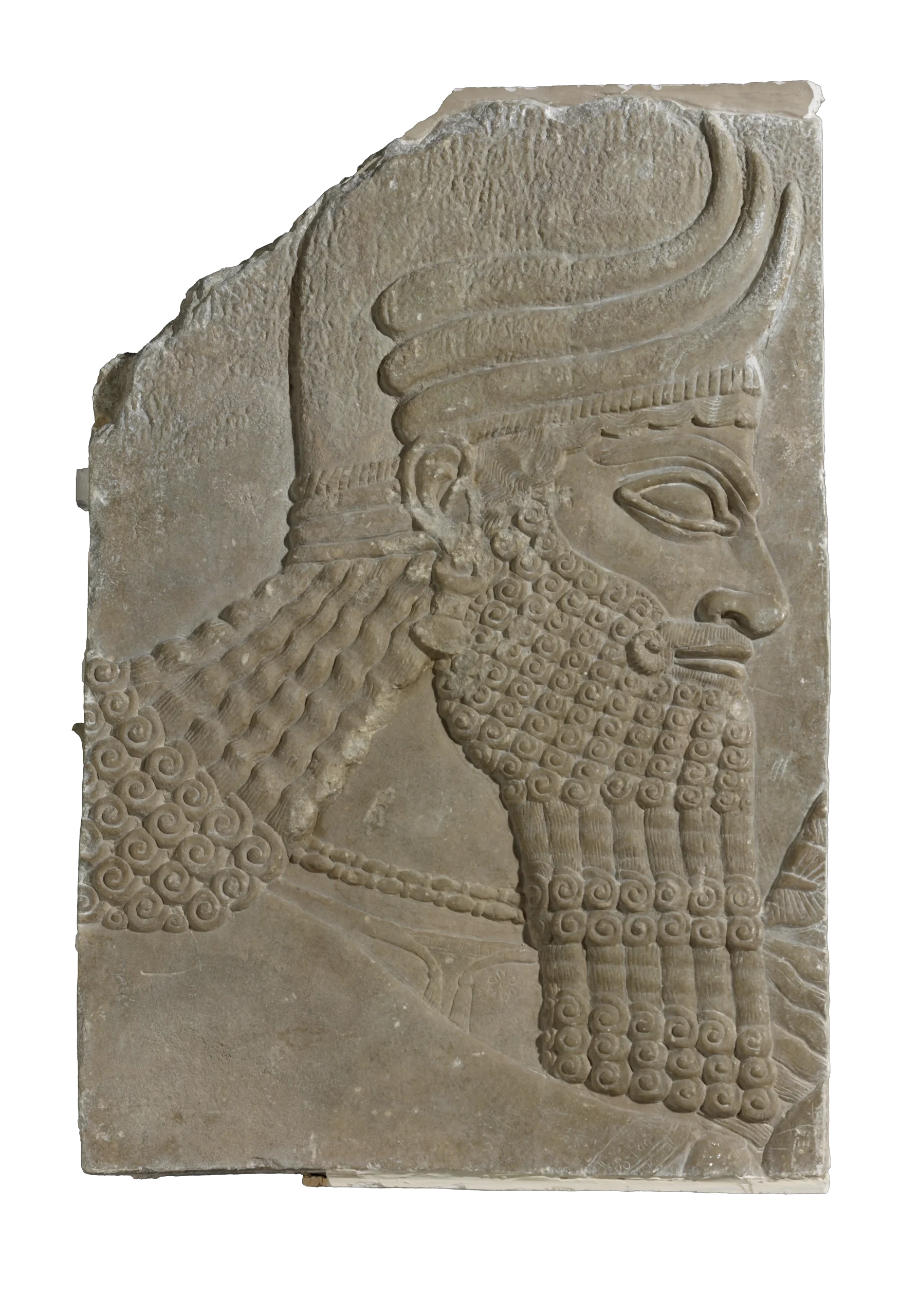 Der sorgfältig, abwechselnd in engen Locken gelegte Bart dieses Schutzgeistes galt schon bei den Assyrern im nördlichen Mesopotamien (heute Irak), als Zeichen von Macht und zur Abgrenzung zu anderen Völkern.