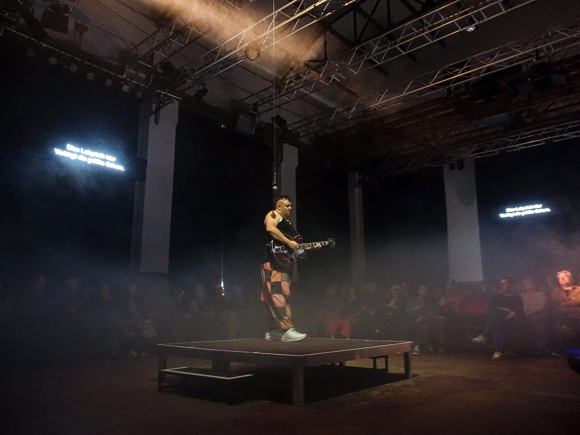 Hier in der Zechenhalle König Ludwig ist aber pure, vibrierende Gegenwart angesagt! Der Sound pendelt authentisch zwischen punkiger Wucht und emanzipatorischer Spoken Word Poetry. Aber auch viele popaffine Songs nehmen das Publikum emotional auf die Reise mit. Spektakulär wirkt, wie die Performer mühelos zwischen ihren Rollen wechseln, überall im ganzen Raum verteilt – eben, weil es hier ja auch um das Hinterfragen von Rollen geht.