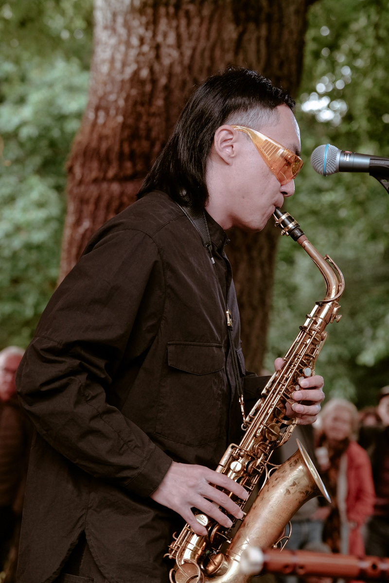 Die neue Baumschatten-Bühne entwickelte subversives Festival-Flair, das an manches Bauernhof-Festival erinnerte, wo einst der Absturz zelebriert wurde. Ein würdiger Ort, um mit Oldschool-Freejazz die Gegenwart mit allen Gründungsmythen des Moers-Festivals kurzzuschließen.
